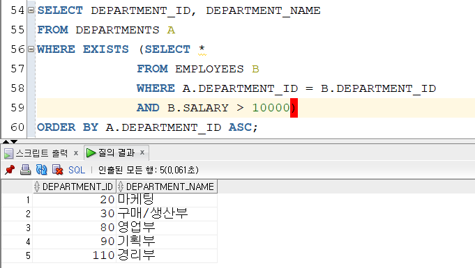 IN과 EXISTS모두 WHERE절에서 조건식으로 사용한다.